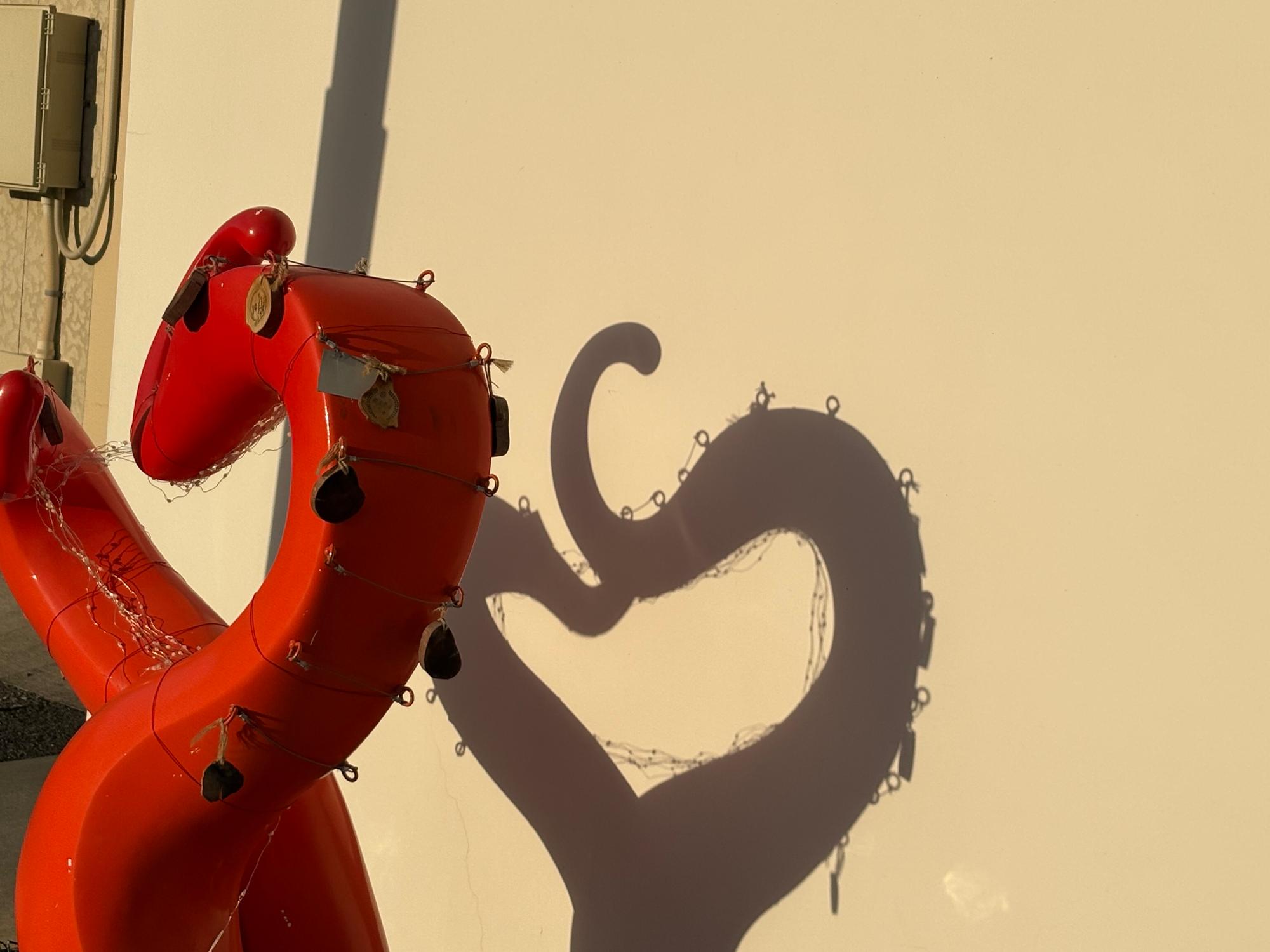 「願イフダ」をモニュメントに結び付けると、蛸の吸盤が完成します。