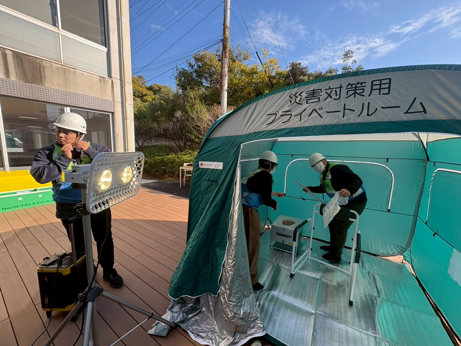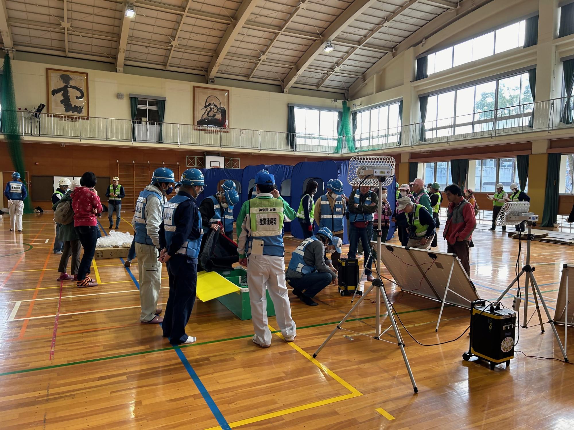 資機材を組立てる様子(大磯中学校)