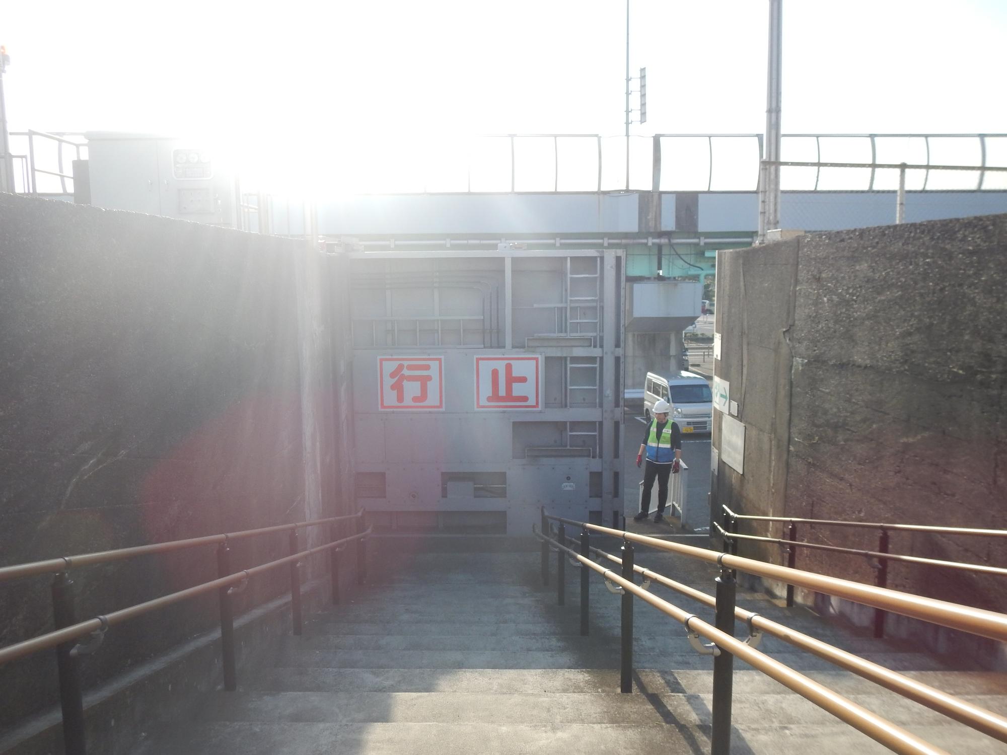 防潮門扉閉鎖の様子