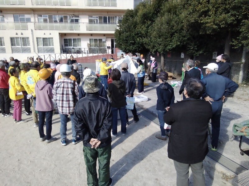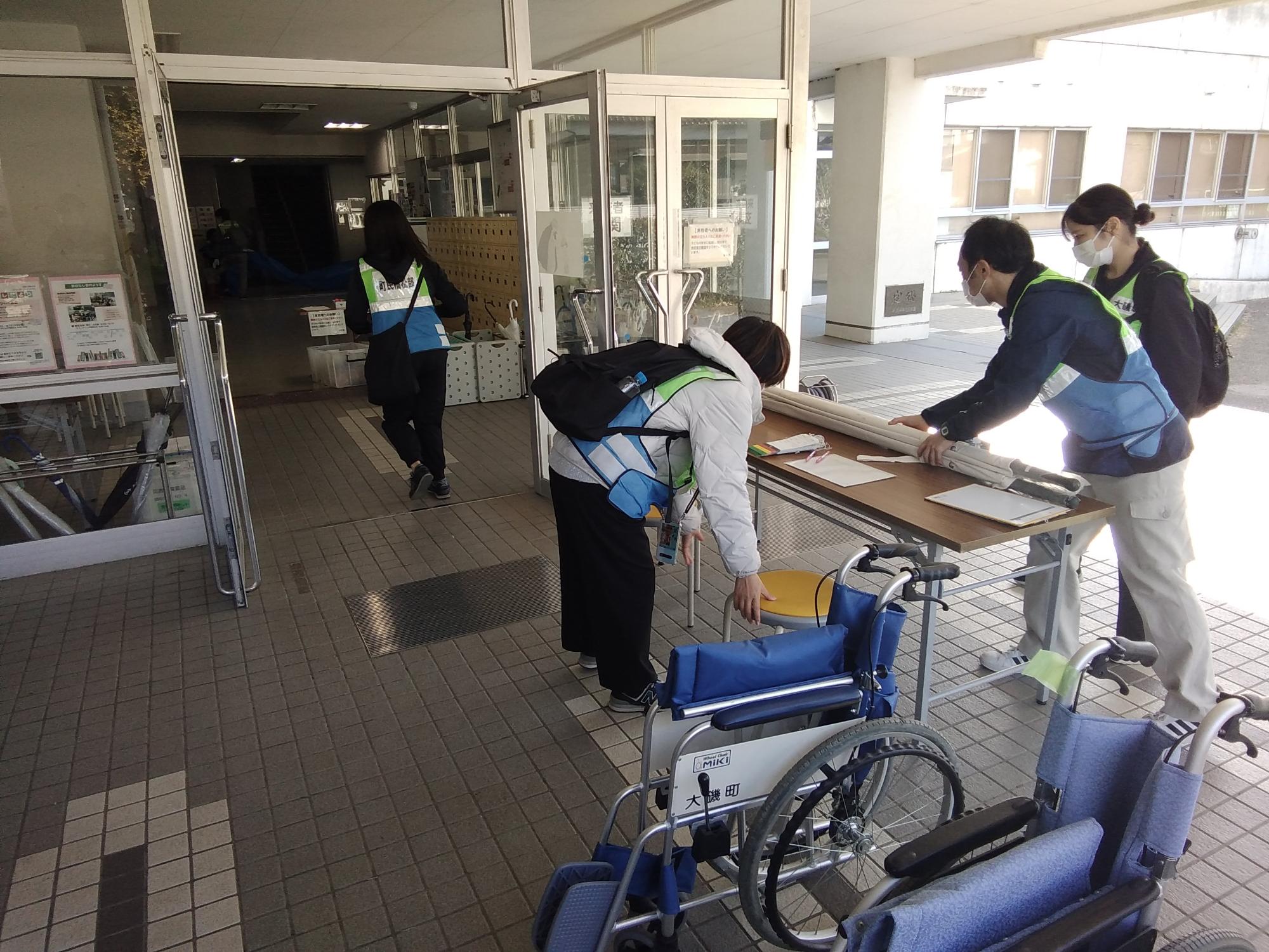 資機材を組立てる様子(国府小学校)