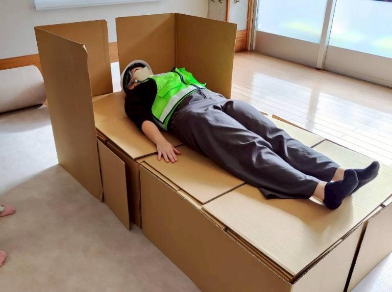 パーティションを組立てる様子(大磯小学校)